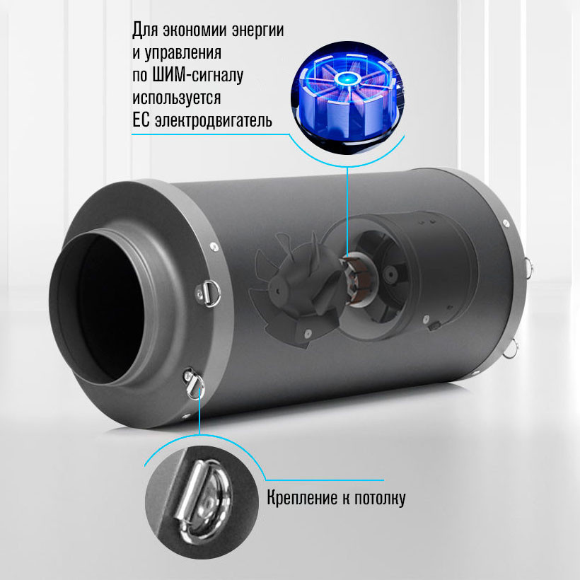 EC-двигатель — высокая энергоэффективность и возможность плавной регулировки скорости.